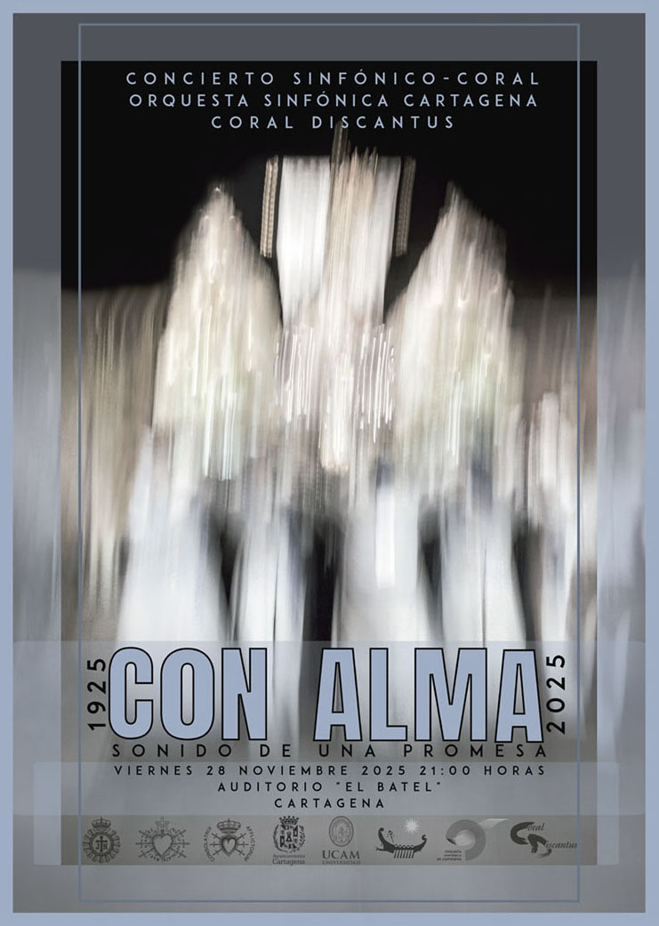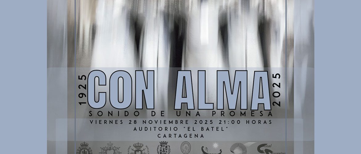 ¡CON ALMA! Concierto sinfónico coral donde el espectador disfrutará de una inmersión en los cien años de historia compartida entre Cartagena y la Virgen de La Piedad. Entre los ciudadanos de esta hermosa tierra y las promesas de cada Lunes Santo.