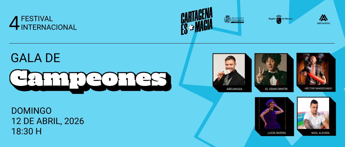 - Abelmagia (Magia Original): Director artístico del festival y un auténtico showman sobre las tablas. Con más de 2.700 actuaciones a sus espaldas, es el gran referente de la magia y el humor en la Región de Murcia, aportando su creatividad única y su carisma para hacer de esta gala una experiencia redonda.