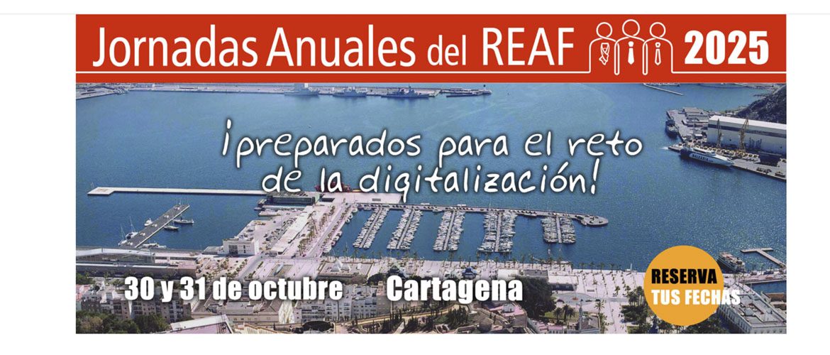 La Jornada Anual del Registro de Economistas Asesores Fiscales (REAF) se reúne este año bajo el lema ‘Preparados para el reto de la digitalización’. La cita es en el Auditorio y Palacio de Congresos El Batel de Cartagena, del 30 al 31 de octubre.
